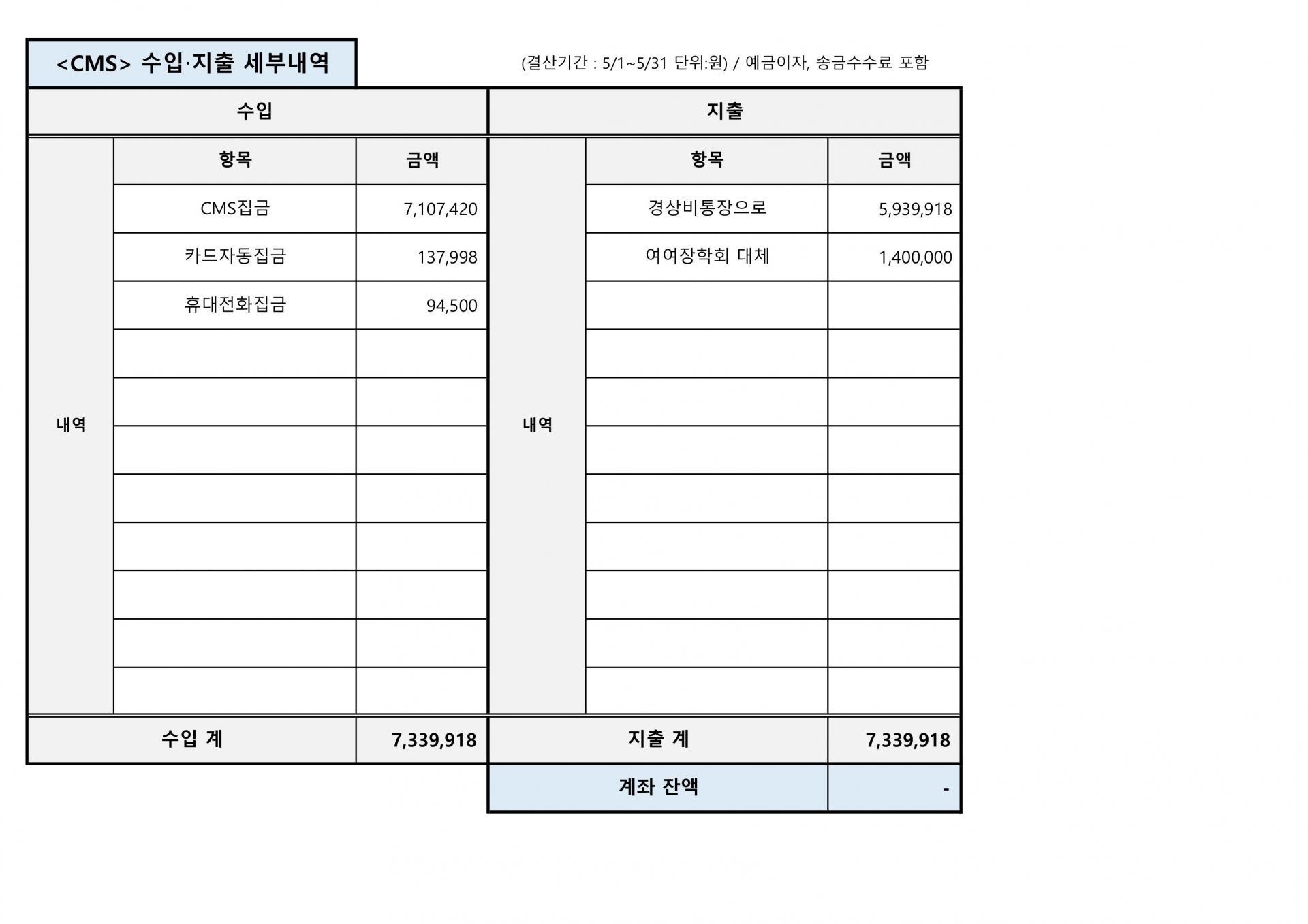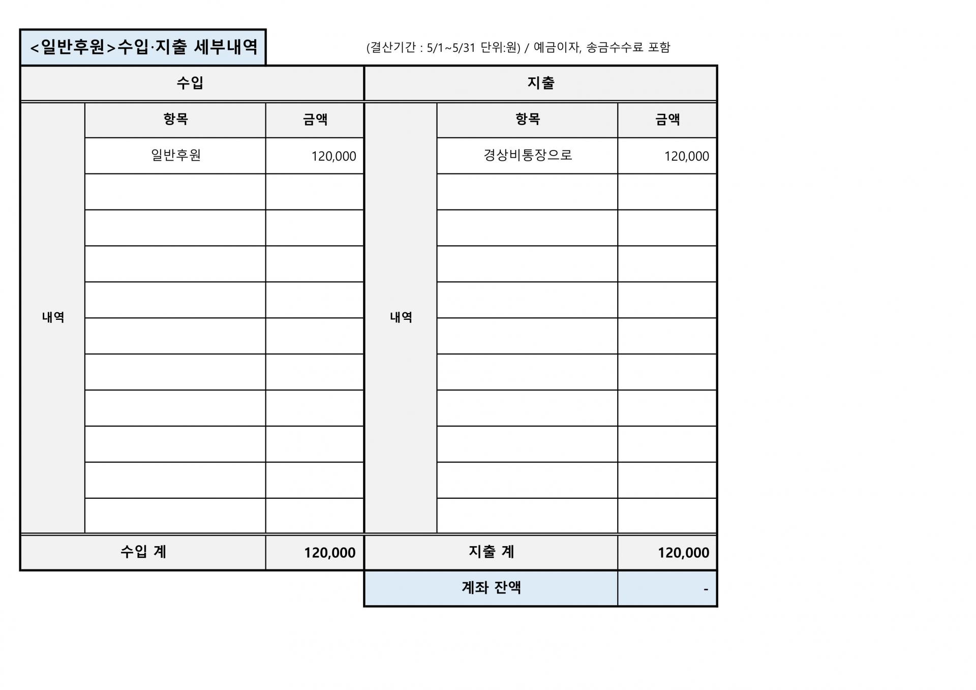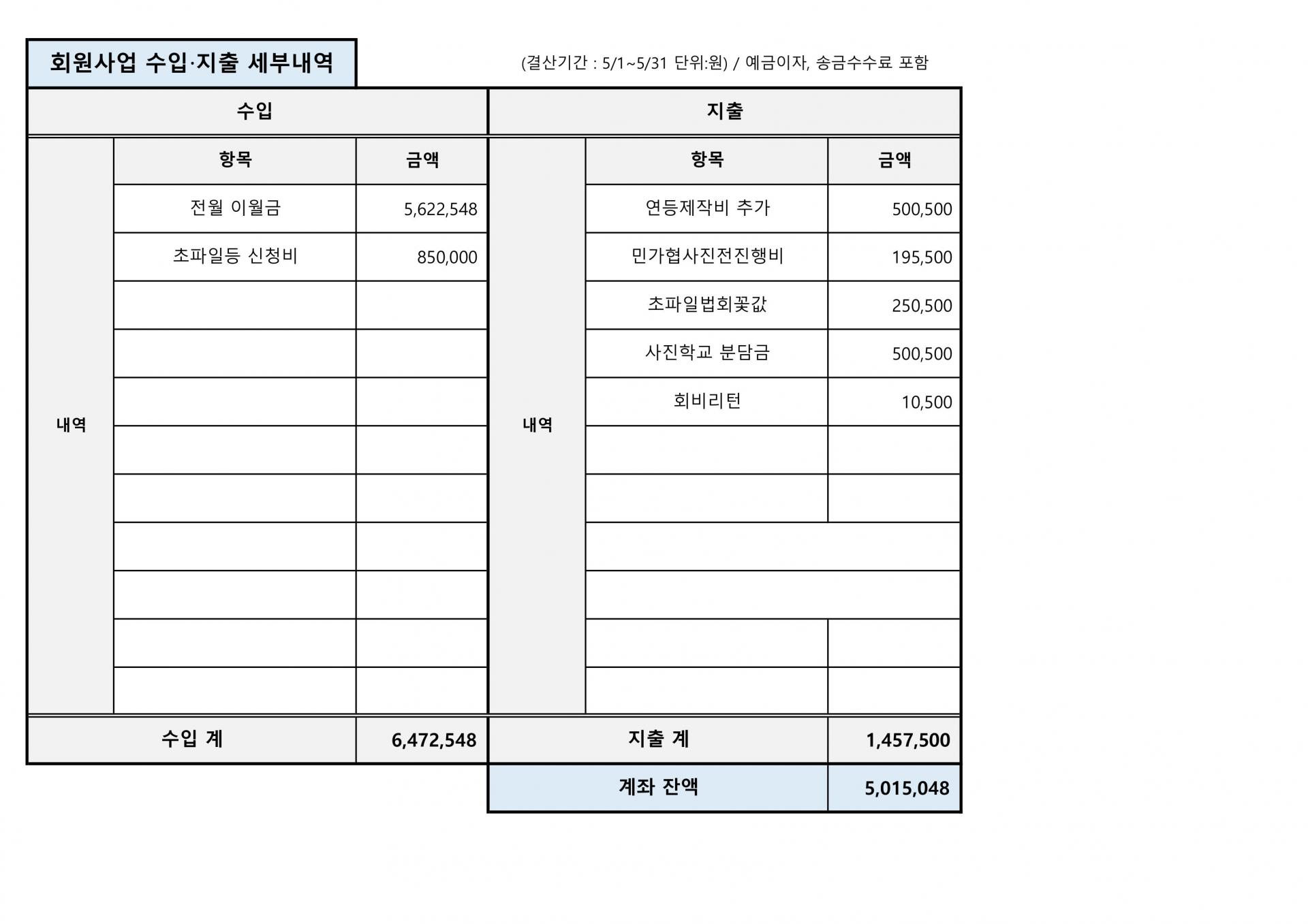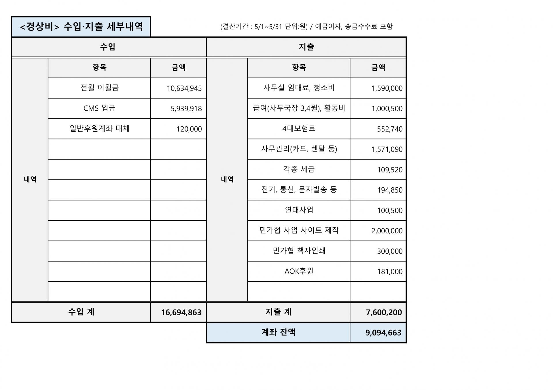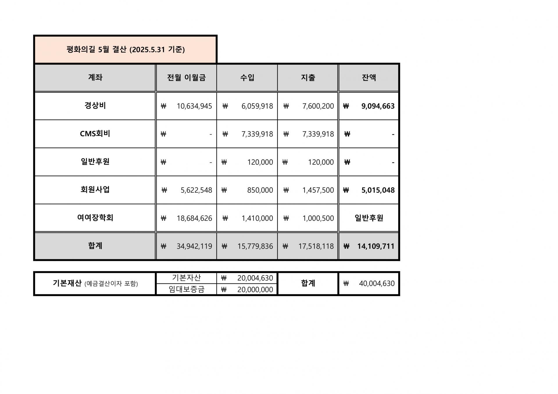 사단법인 평화의길 2025년 5월 재정결산표
